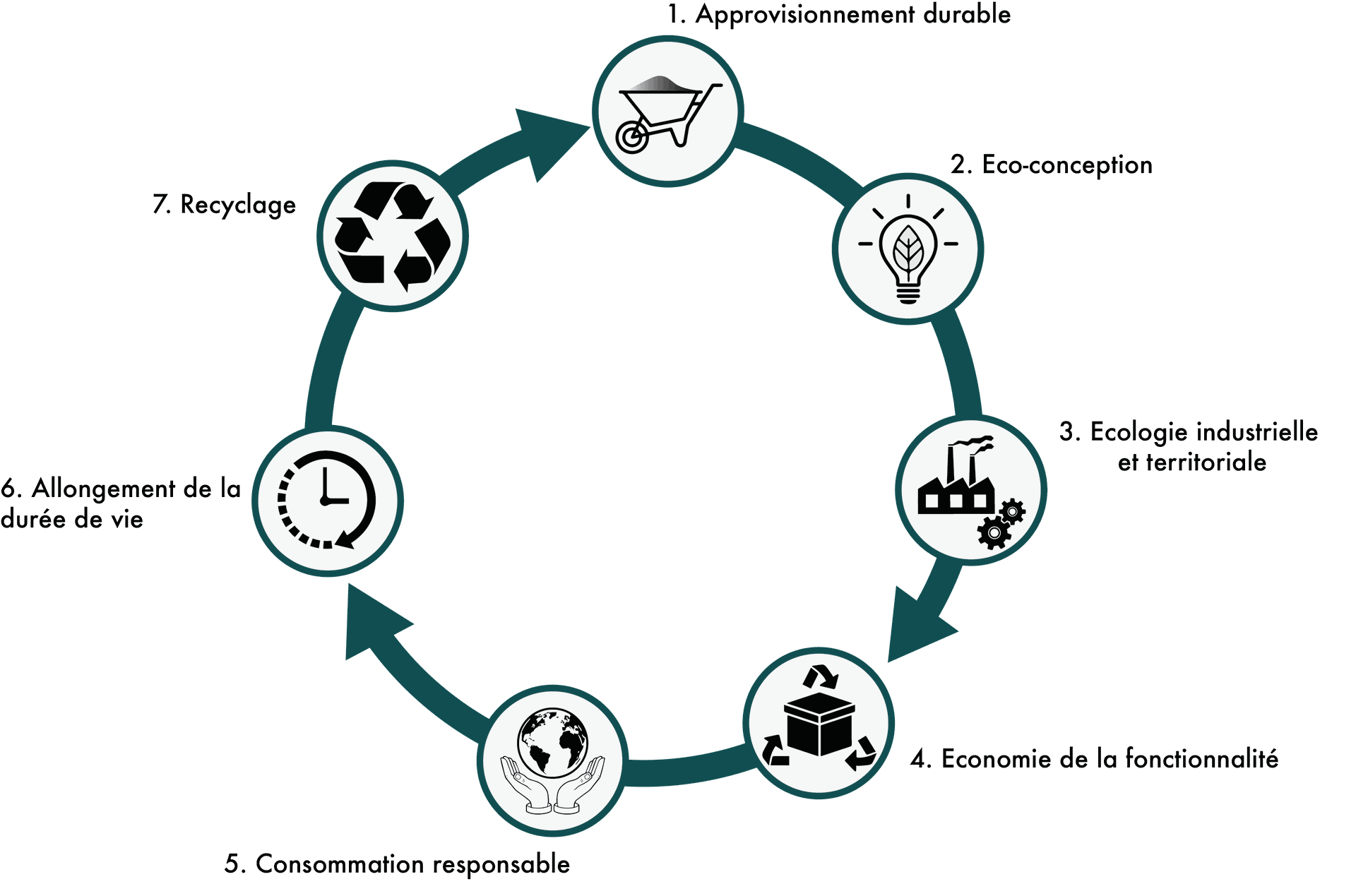 “Système économique d’échange et de production qui, à tous les stades du cycle de vie des produits (bien et services), vise à augmenter l'efficacité de l’utilisation des ressources et à diminuer l’impact sur l’environnement tout en permettant le bien-être des individus.”