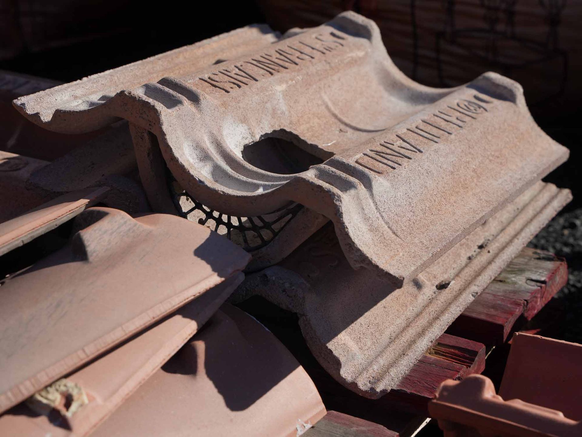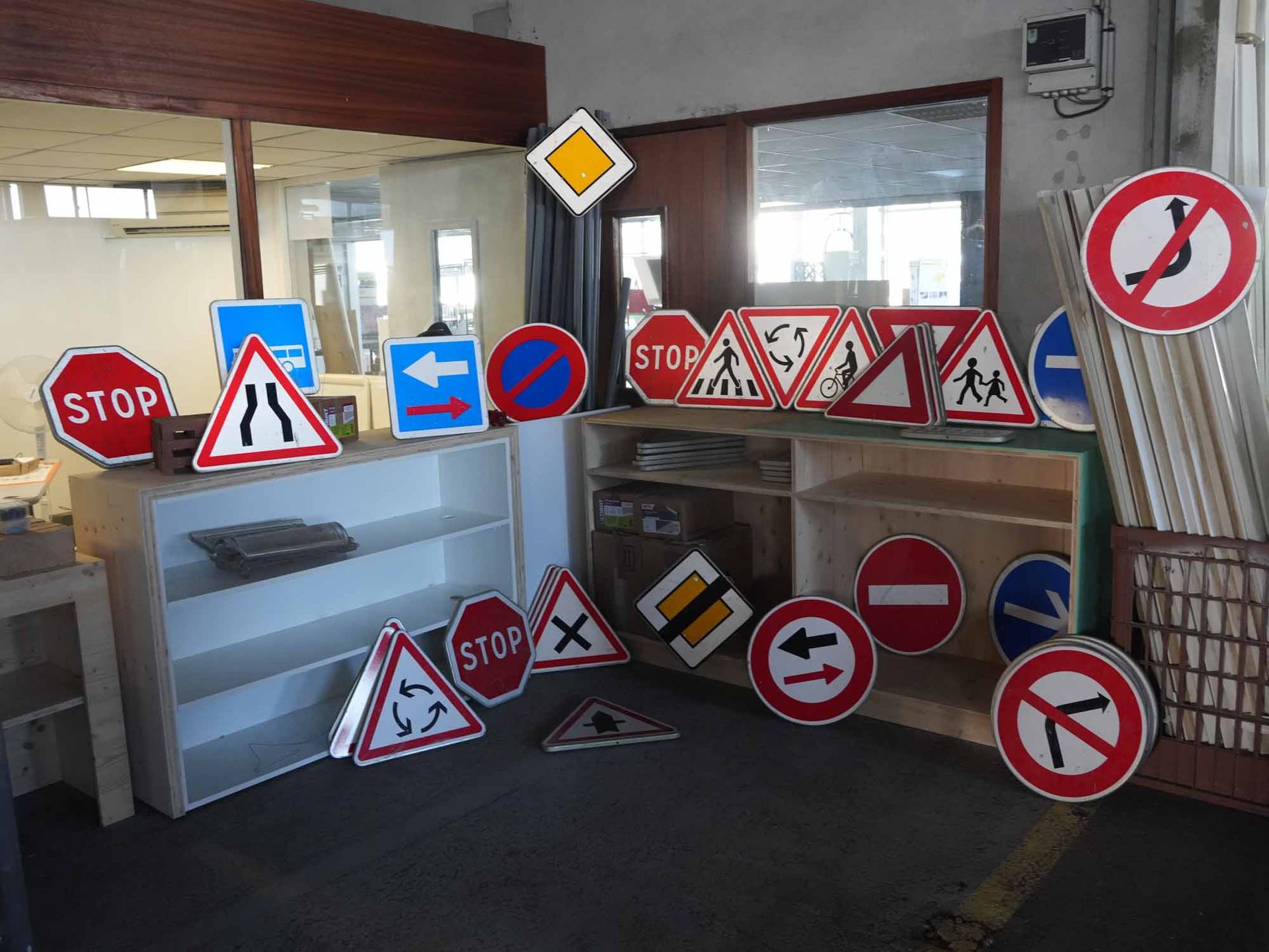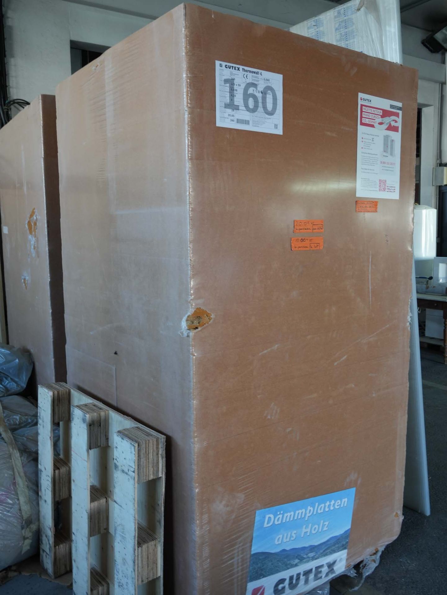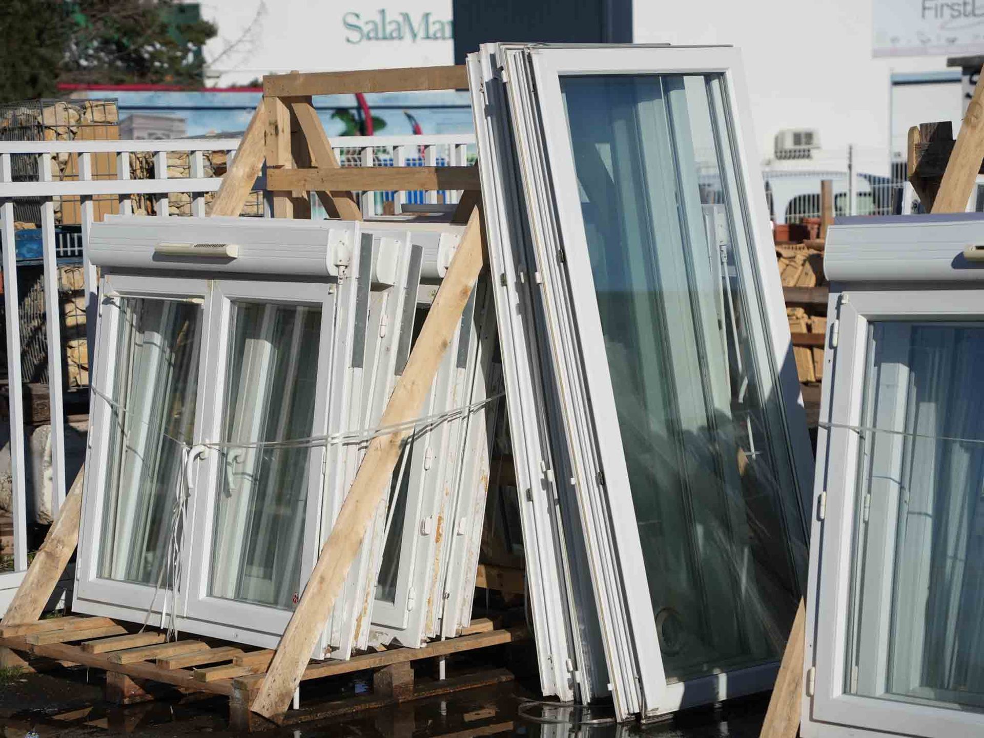 nombreuses menuiseries PVC, très grand lot de plots de terrasse (plusieurs dimensions), palettes de tuiles, plaques de mélaminé, isolants PU, plateaux avec vasques d’angle, grand lot de rouleaux de moquette (nombreuses couleurs), modules de cuisine, banque d’accueil, etc.