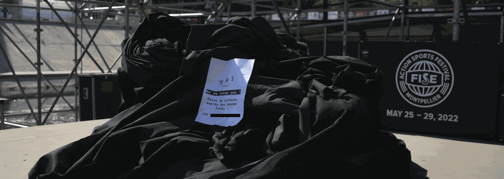 Notre intervention durant le FISE 2022 a permis de réaliser de la sensibilisation quant au réemploi face aux festivaliers. Ces derniers appréciant la démarche entreprise par Hurricane pour optimiser leur consommation de matériaux pour proposer un festival au goût du jour de la transition écologique. Durant l'événement nous avons réalisé un repérage des divers matériaux du FISE, certains mis en œuvre ne sachant pas quelle était leur destination post-festival, d’autres matériaux identifiés comme des restes du chantier laissés en tas à la vue des festivaliers. Nous prenons les devants en imprimant des fiches « ne me jetez pas » qui auront été placé stratégiquement le dernier jour du festival pour s’assurer du réemploi de ses matériaux, dans certains cas, quasi neufs.